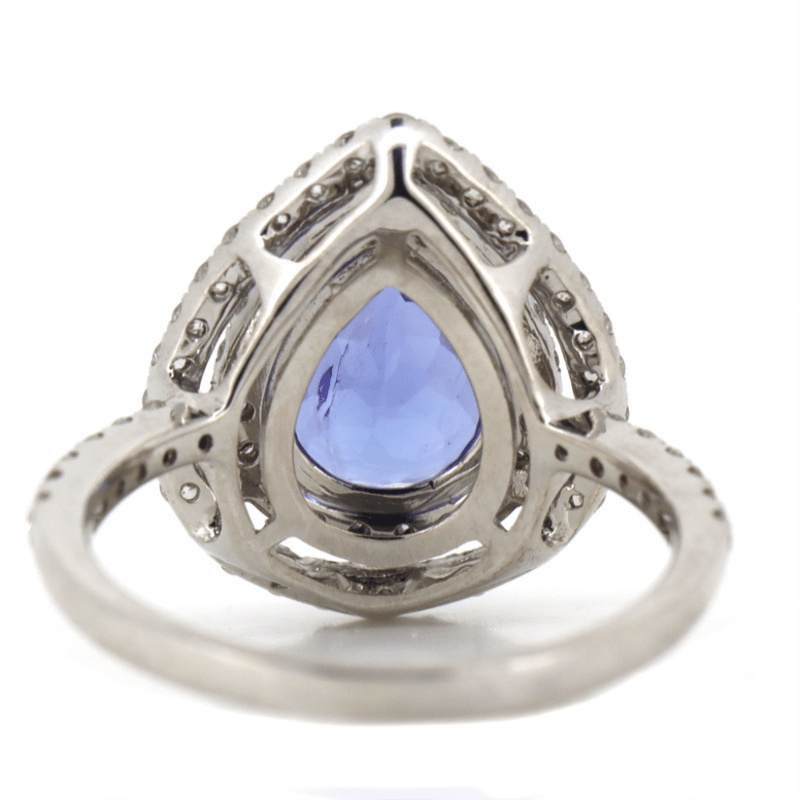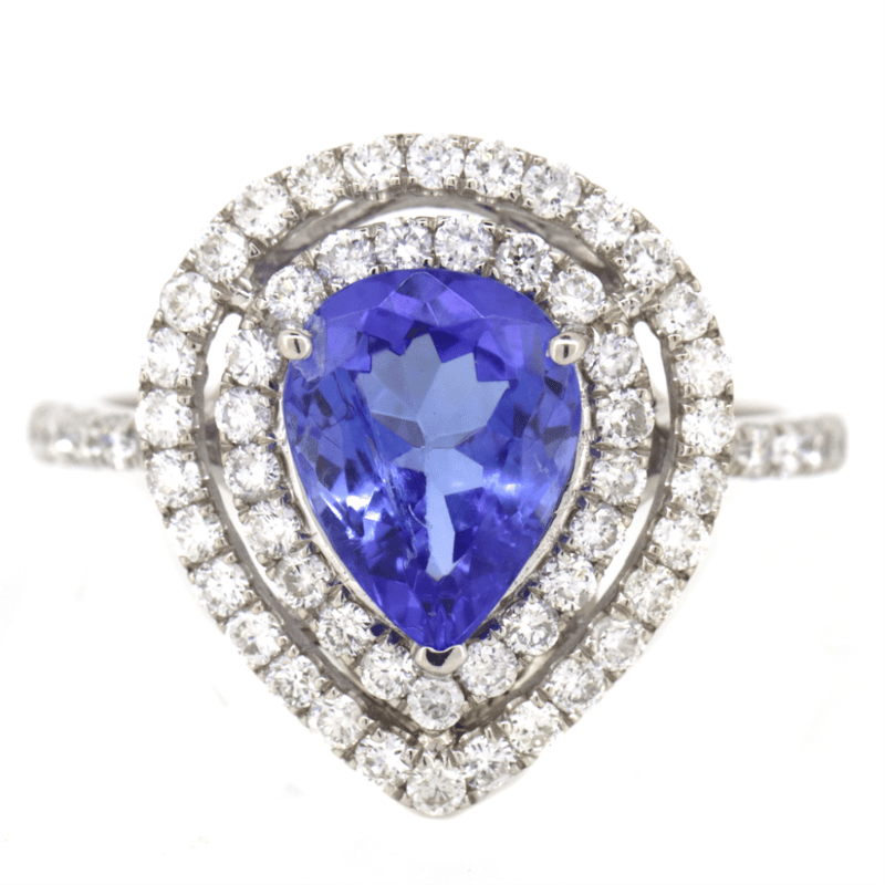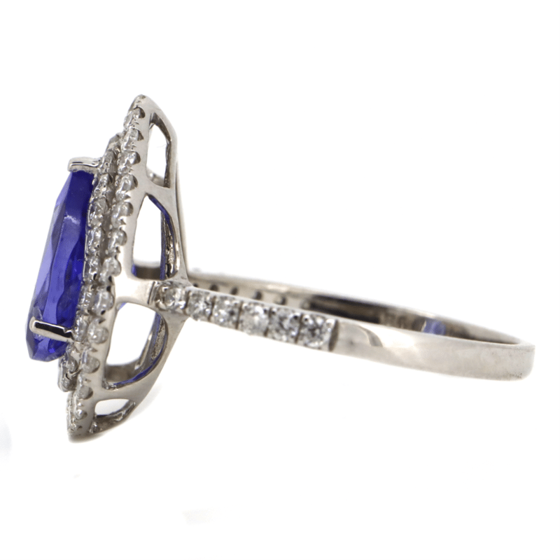 14K WHITE GOLD, TANZANITE AND DIAMOND, DOUBLE HALO RING. The Centre Features, One Pear Cut, Vivid Violet Blue, Tanzanite (1.94Ct, Light Natural Inclusions), Prong/Claw Set. Surrounding The Centre In A Double Halo And Decorating The Band Are, 63 Round Brilliant Cut, Diamonds (0.71Ct Tdw, H-J Colour, Si-I2 Clarity), Micro-Claw Set. Ring Size L 1/2. Valuations Provided by an Independent Third-Party Professional Not Directly Associated With Lloyds Auctions at AUD $$16,300.00This valuation has been conducted by an independent third-party professional. The valuation amount is an assessment by the issuing valuer and does not reflect the auction value of the item. Any inquiries regarding the valuation should be directed to the issuing valuer (refer to contact details on the certificate), as Lloyds Auctions has no affiliation or influence over the valuation, the valuer, or the stated amount. Condition: Good - Refer Images 0+39