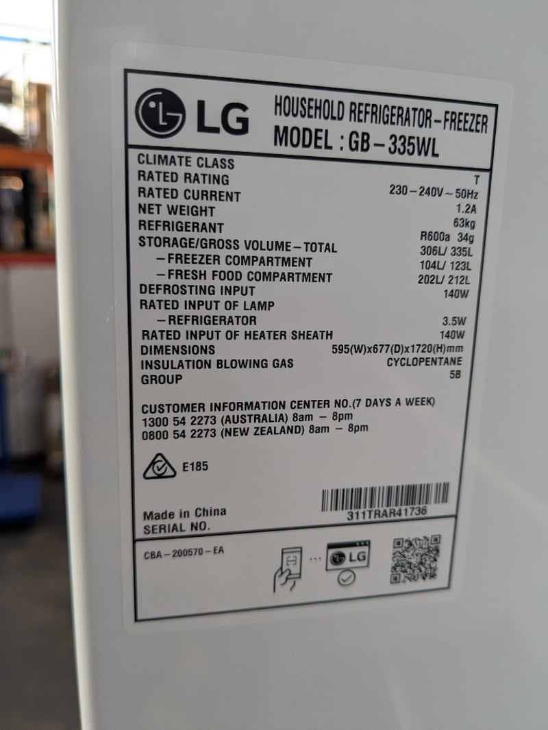 Refrigerator, LG 355L fridge/ freezer model no. GB-335WL