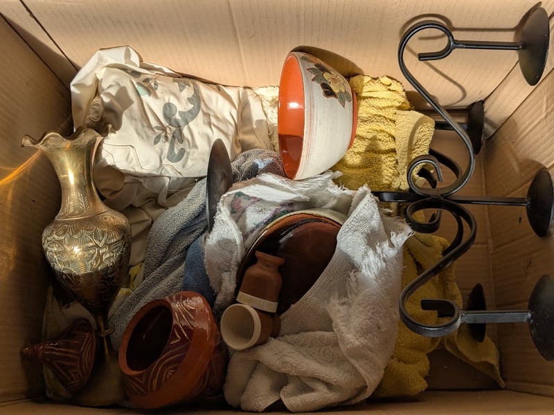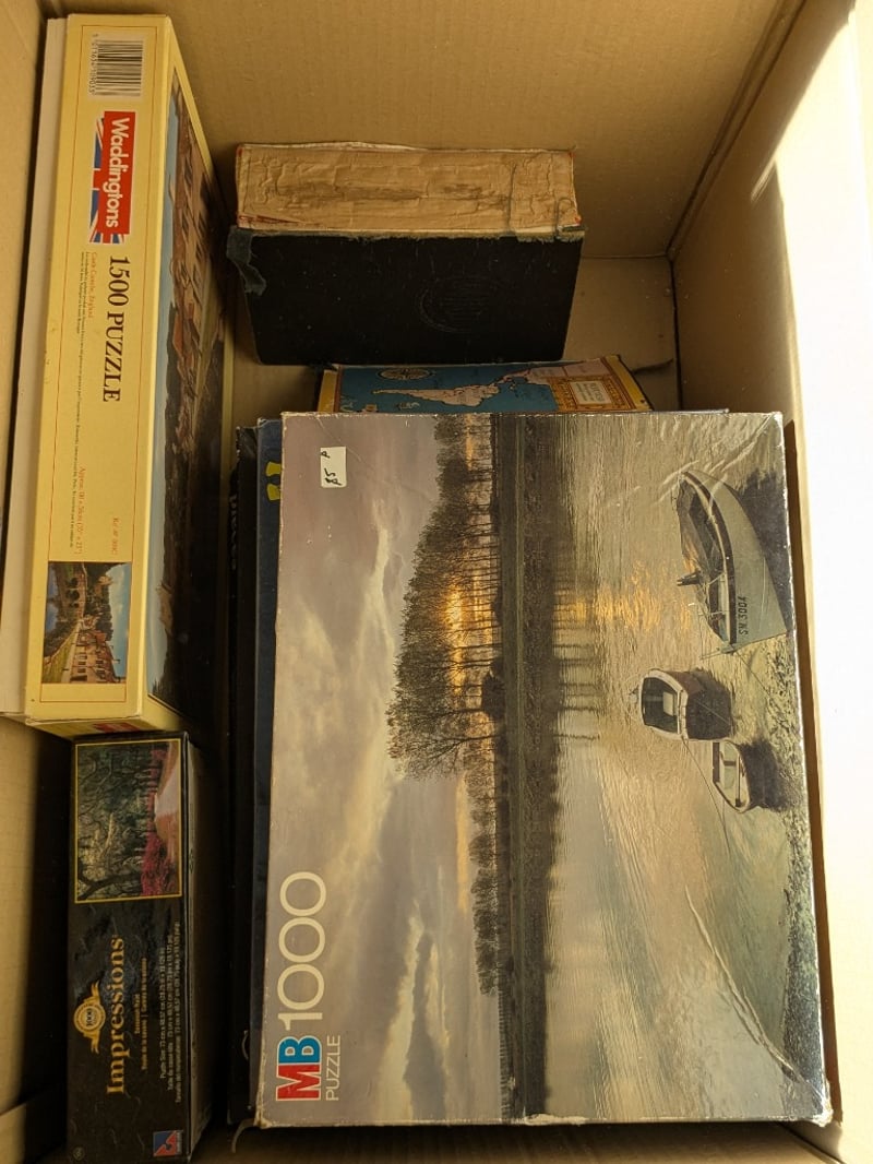 Homewares, 12 boxes including ornaments, kitchen appliances, silver style items, puzzles and more