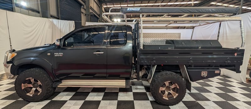 Vendor Advises: Refurbished gear box, dual battery, UHF Radio, Roof Rack, Lift, Bluetooth, Toolbox storage on Tray and Undercarriage, T-bar for longer goods to be transported. Side awning, reverse camera and exterior power socket. Some minor paint imperfections.