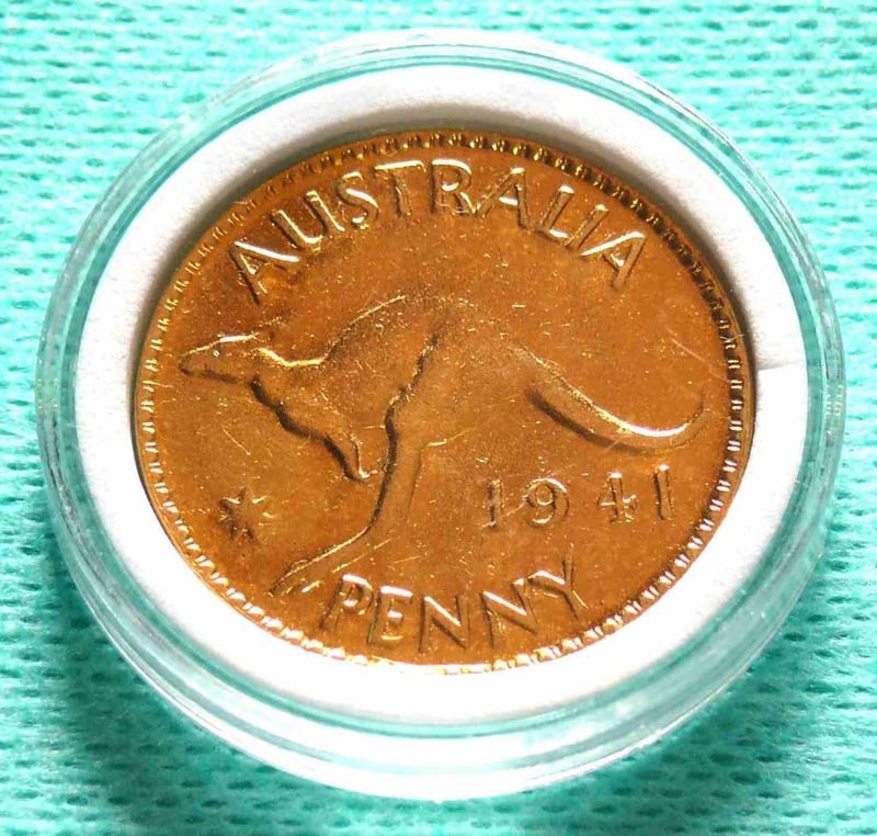 1941 KGVI UNCIRCULATED 18CT. GOLD PLATED AUSTRALIAN PENNY In Protective Clear Capsule. 488406+12