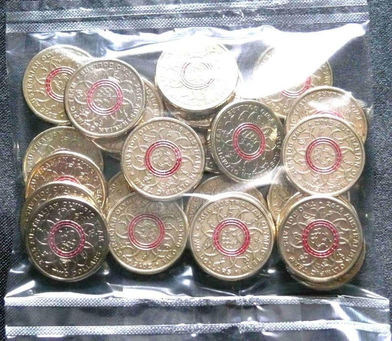 BAG OF 2016 RIO OLYMPIC (RED RING) $2 COLOUR COINS (25X Uncirculated Coins). 488406+32