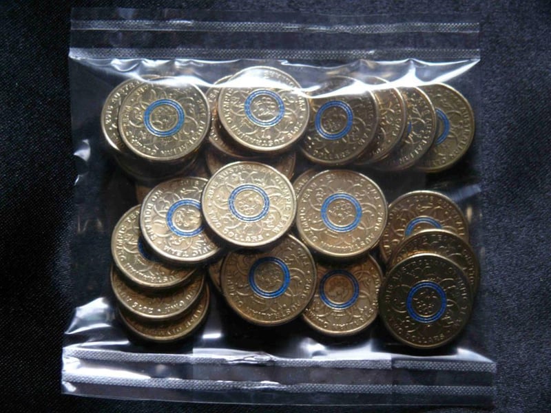 BAG OF 2016 RIO OLYMPIC (BLUE RING) $2 COLOUR COINS (25X Uncirculated Coins). 488406+33