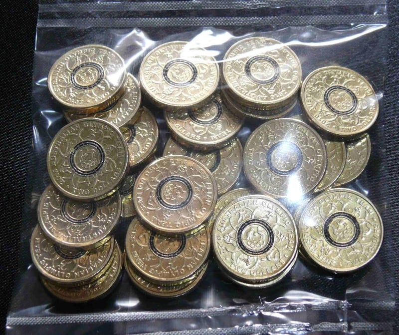 BAG OF 2016 RIO OLYMPIC (BLACK RING) $2 COLOUR COINS (25X Uncirculated Coins). 488406+36