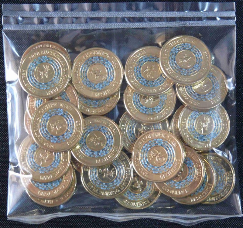 BAG OF 2020 TOKYO OLYMPIC (BLUE RING) $2 COLOUR COINS (25X Uncirculated Coins). 488406+41