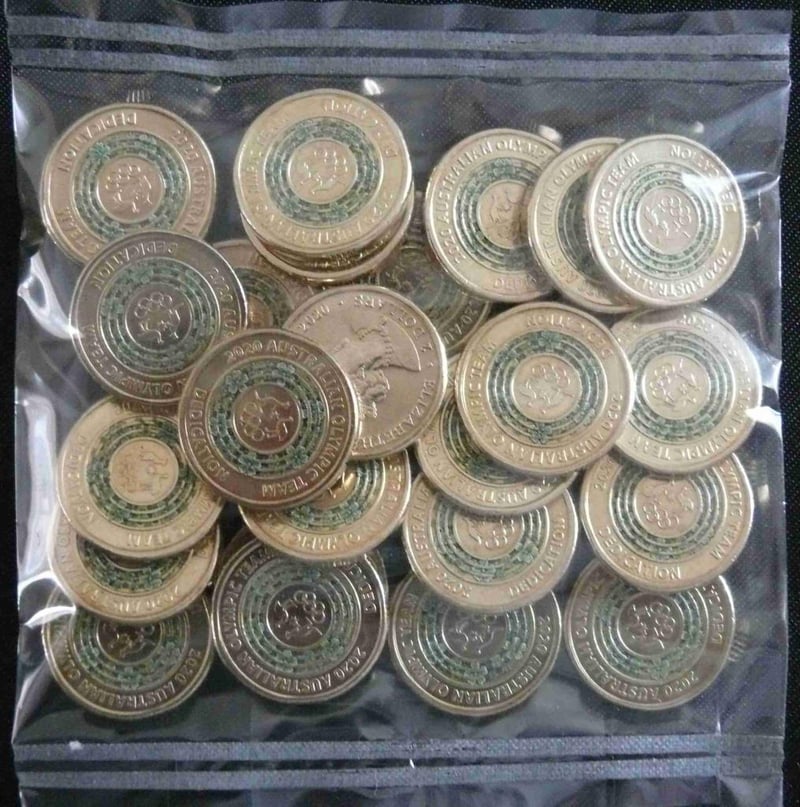 BAG OF 2020 TOKYO OLYMPIC (GREEN RING) $2 COLOUR COINS (25X Uncirculated Coins). 488406+42