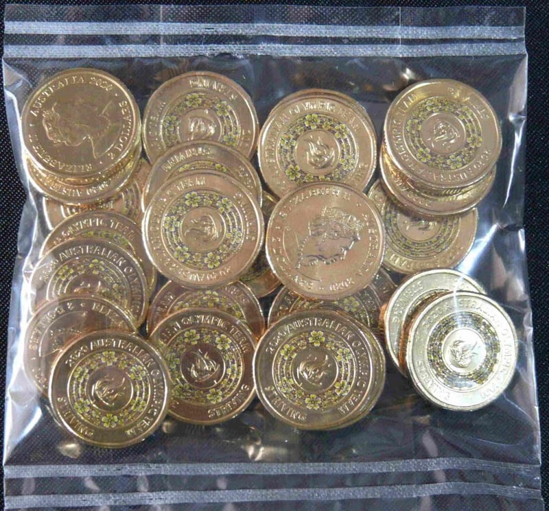BAG OF 2020 TOKYO OLYMPIC (YELLOW RING) $2 COLOUR COINS (25X Uncirculated Coins). 488406+43