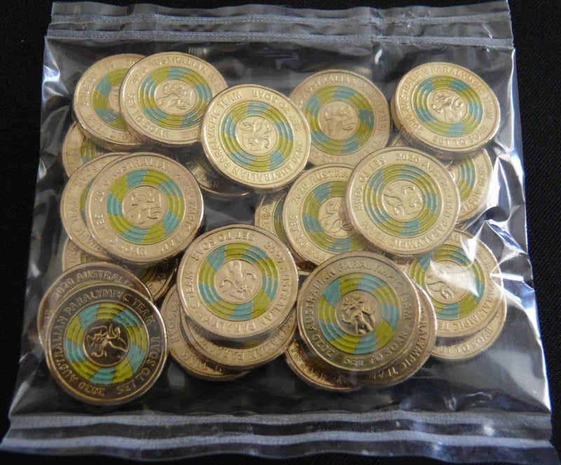 BAG OF 2020 TOKYO PARALYMPIC $2 COLOUR COINS (25X Uncirculated Coins). 488406+45