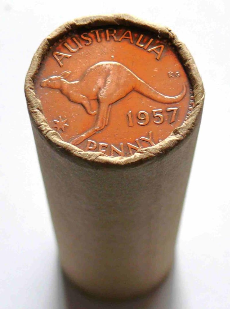 ROLL OF 1957 QEII AUSTRALIAN PENNY (50X Circulated Coins In A Roll). 488406+4