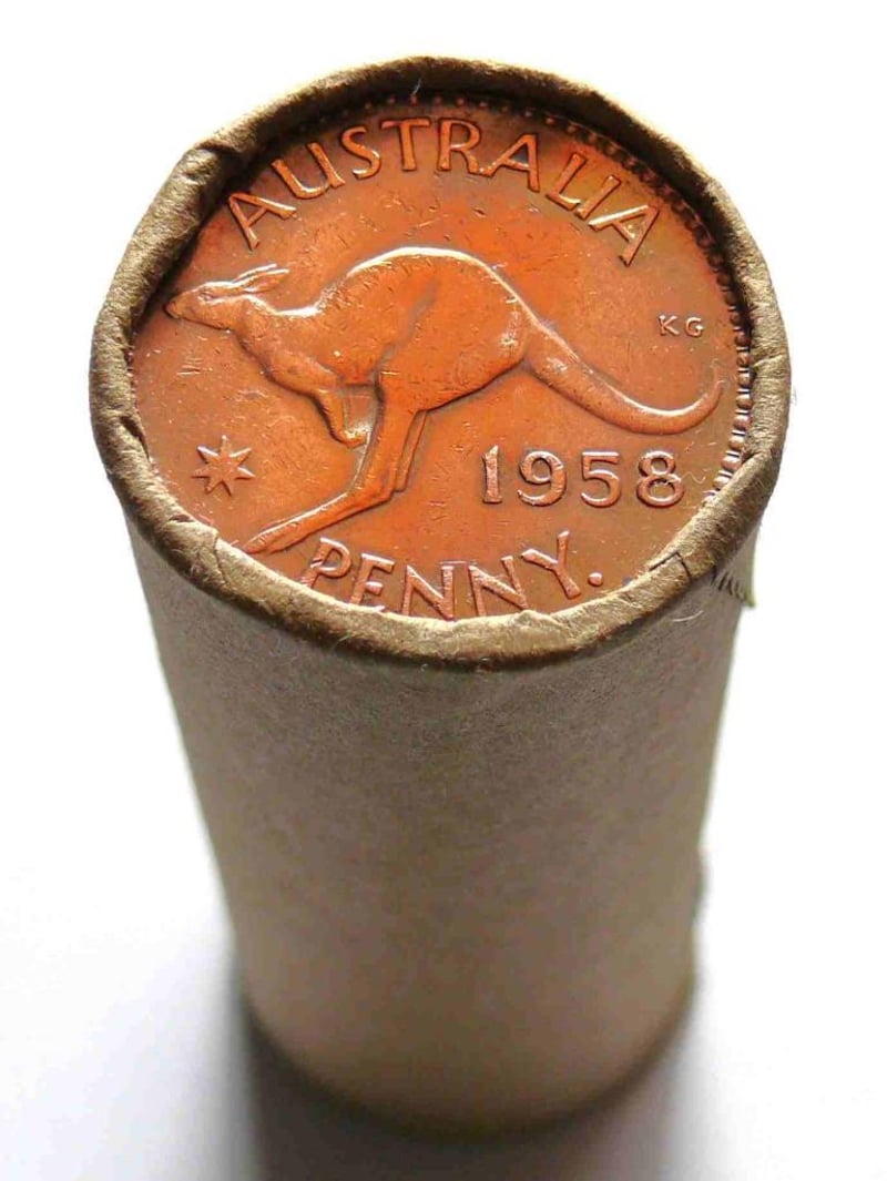 ROLL OF 1958 QEII AUSTRALIAN PENNY (50X Circulated Coins In A Roll). 488406+5