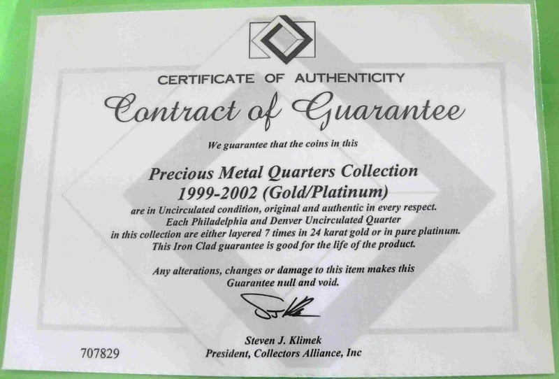 4X PURE PLATINUM PLATED STATE QUARTER With Certificate Of Authenticity, Mississippi, Rhode Island, Massachusetts, New Jersey. 488406+51