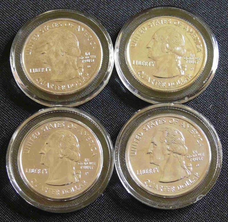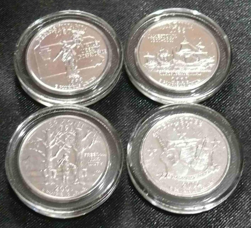 4X PURE PLATINUM PLATED STATE QUARTER With Certificate Of Authenticity, Tennessee, Vermont, Virginia, Pennsylvania. 488406+52
