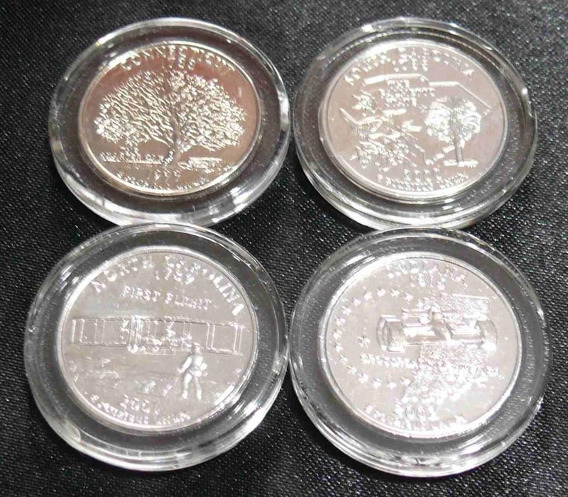 4X PURE PLATINUM PLATED STATE QUARTER With Certificate Of Authenticity, Indiana, North Carolina, South Carolina, Connecticut. 488406+54