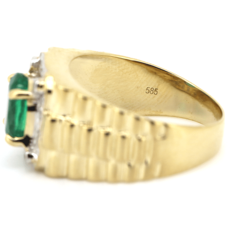 14K YELLOW GOLD, EMERALD AND DIAMOND, GENTS RING. The Centre Features, One Oval Cut, Emerald (1.79Ct, Moderately Included), Claw Set. Surrounding The Centre In A Halo Are, 14 Round Brilliant Cut, Diamonds (0.28Ct Tdw, G-H Colour, Si1-Si2 Clarity), Bezel/Micro-Claw Set. Ring Size Q 1/2. Valuations Provided by an Independent Third-Party Professional Not Directly Associated With Lloyds Auctions at AUD $$20,000.00This valuation has been conducted by an independent third-party professional. The valuation amount is an assessment by the issuing valuer and does not reflect the auction value of the item. Any inquiries regarding the valuation should be directed to the issuing valuer (refer to contact details on the certificate), as Lloyds Auctions has no affiliation or influence over the valuation, the valuer, or the stated amount. Condition: Good - Refer Images 0645911+35