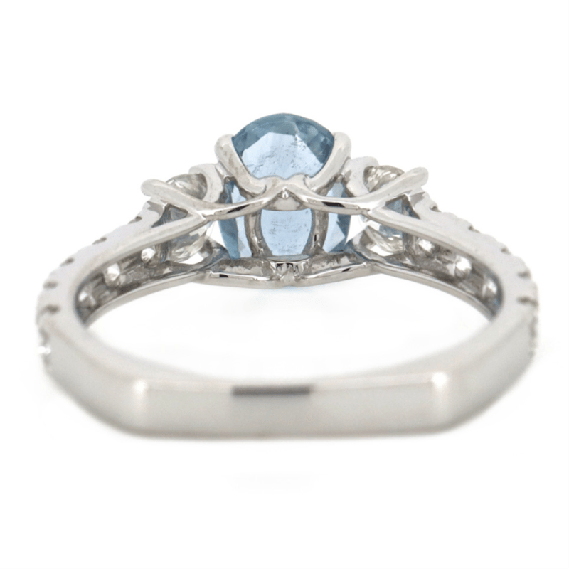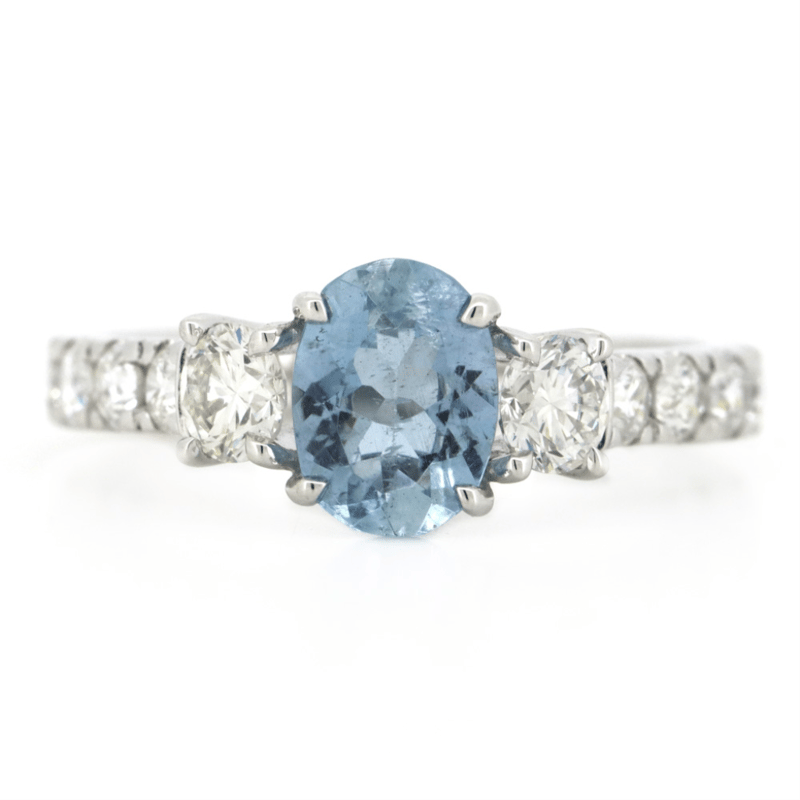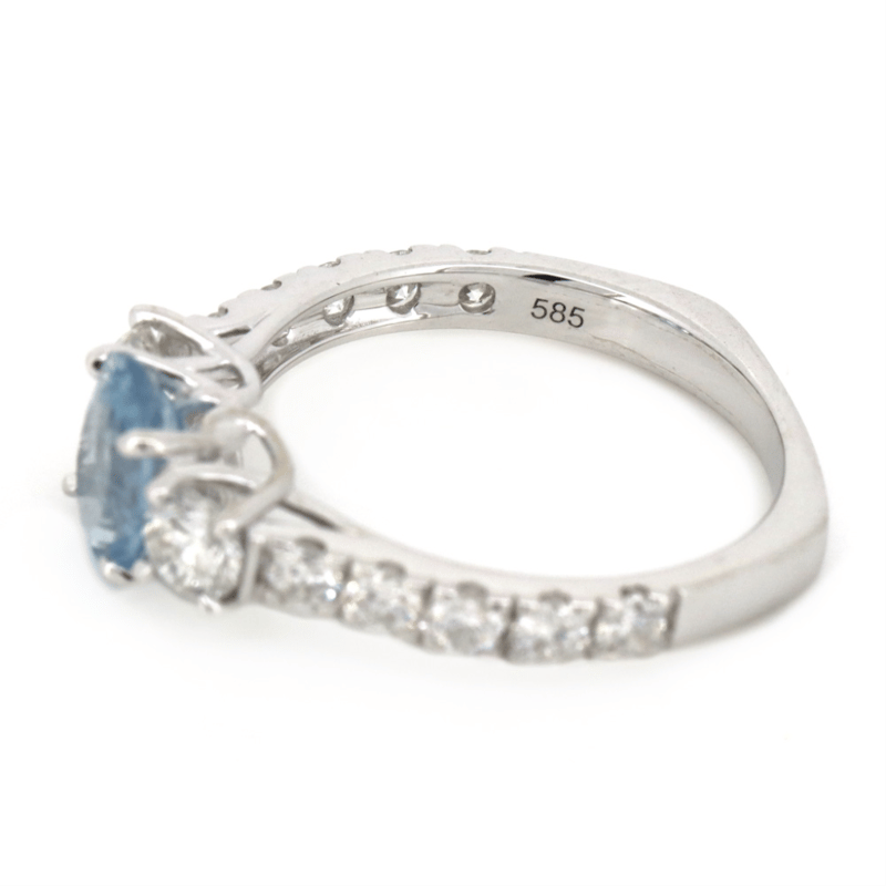 14K WHITE GOLD, AQUAMARINE AND DIAMOND, DRESS RING. The Centre Features, One Oval Cut, Aquamarine (0.89Ct, Strong Light Blue), Claw Set. Decorating The Shoulders Are, 2 Round Brilliant Cut, Diamonds (0.42Ct Tdw, G-H Colour, Si1-Si2 Clarity). Embellishing The Band Are, 10 Round Brilliant Cut, Diamonds (0.51Ct Tdw, G-H Colour, Si1-Si2 Clarity), Claw Set. Ring Size M 1/2. Valuations Provided by an Independent Third-Party Professional Not Directly Associated With Lloyds Auctions at AUD $$15,000.00This valuation has been conducted by an independent third-party professional. The valuation amount is an assessment by the issuing valuer and does not reflect the auction value of the item. Any inquiries regarding the valuation should be directed to the issuing valuer (refer to contact details on the certificate), as Lloyds Auctions has no affiliation or influence over the valuation, the valuer, or the stated amount. Condition: Good - Refer Images 0645911+24