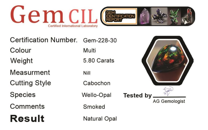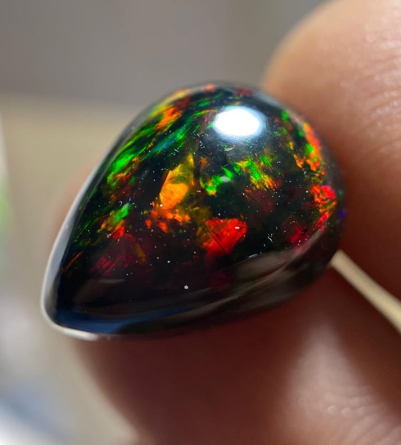 5.80 CARATS NATURAL WELLO-BLACK OPAL 5.80 Carats Natural Wello-Black OpalStone = OpalWeight = 5.80 CaratsColour = Multi-Colour Treatment = SmokedCut = Cabochon Note = Picture Taken Under Light. Condition: Good - Refer Images 0488410+30