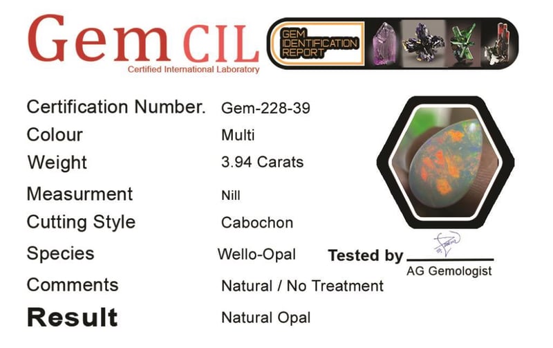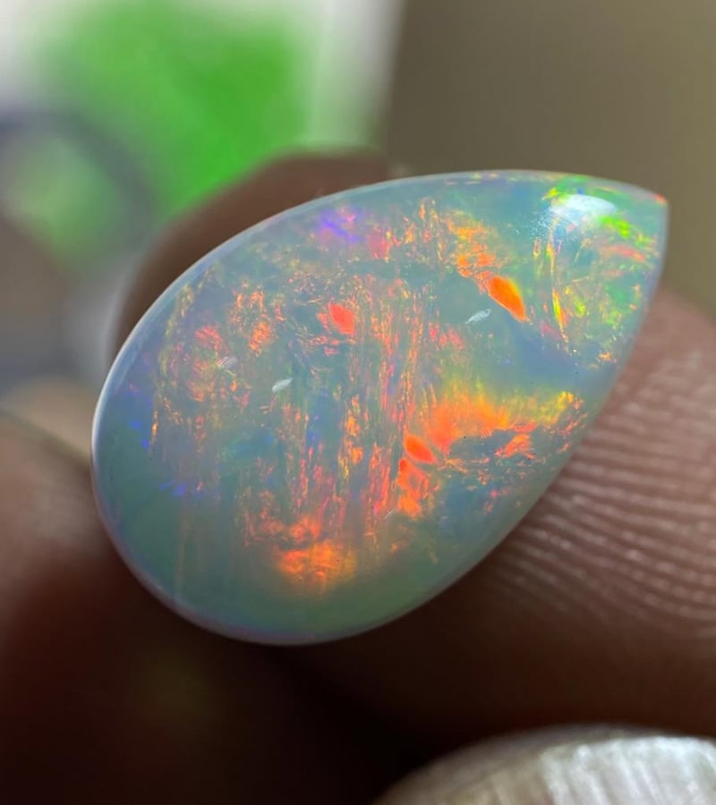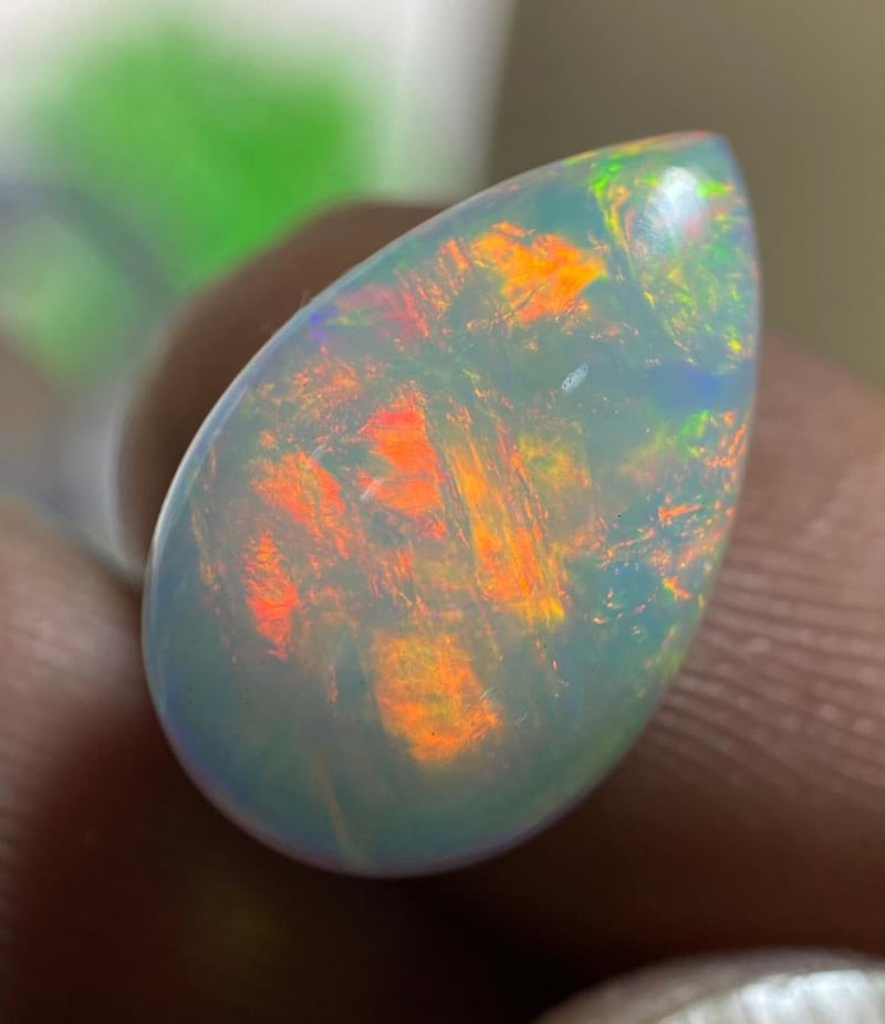 3.94 CARATS NATURAL ELECTRIC FIERY OPAL 3.94 Carats Natural Electric Fiery OpalStone = Natural OpalWeight = 3.94 Carats Cut = Fancy Colour = Play Of Various ColoursCut = Cabochon Treatment = Natural, No TreatmentNote = Picture Taken Under Light Condition: Good - Refer Images 0488410+39