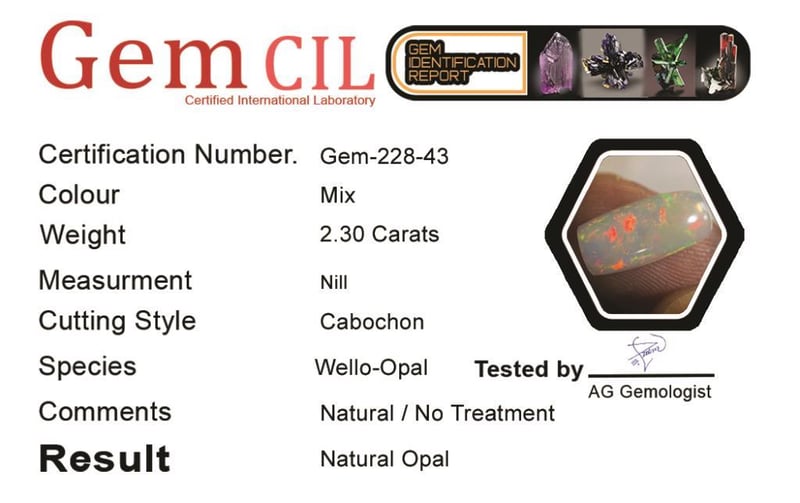 2.30 CARATS NATURAL FIERY OPAL 2.30 Carats Natural Fiery OpalStone = Natural OpalWeight = 2.30 Carats Cut = Fancy Colour = Play Of Various ColoursCut = Cabochon Treatment = Natural, No TreatmentNote = Picture Taken Under Light Condition: Good - Refer Images 0488410+43