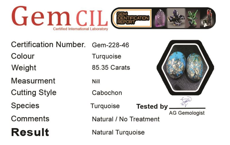 85.35 CARATS NATURAL QUALITY TURQUOISE 85.35 Carats Natural Quality Turquoise Stone = Natural TurquoiseWeight = 85.35 Carats Cut = Cabochon Colour = TurquoiseQuantity = 1Note = Gem Cil, Certified, Condition: Good - Refer Images 0488410+46