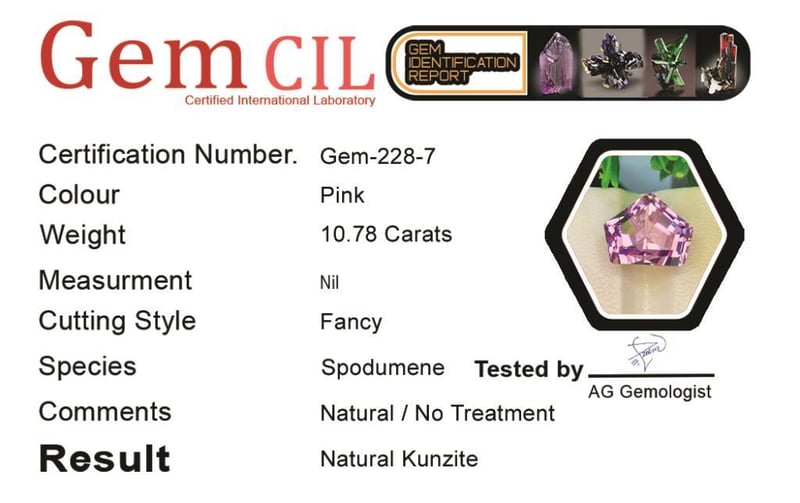 10.78 CARATS NATURAL TOP QUALITY PURPLISH-PINK KUNZITE 10.78 Carats Natural Top Quality Purplish-Pink Kunzite Stone = Natural KunziteWeight = 10.78 Carats Colour = Purplish-PinkCut = Fancy Lustre = ExcellentNote = Gem Cil, Certified, Precise Custom Cut (Not Commercial) Condition: Good - Refer Images 0488410+7