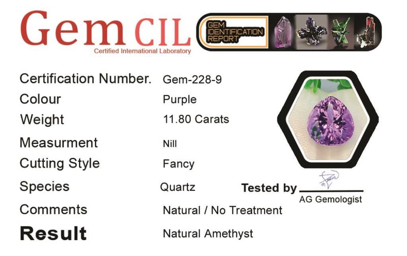 11.80 CARATS NATURAL QUALITY BRAZILIAN AMETHYST 11.80 Carats Natural Quality Brazilian AmethystStone = Natural AmethystWeight = 11.80 CaratsColour = PurpleCut = Fancy Lustre = Excellent Note = Gem Cil, Certified, Precise Custom Cut (Not Commercial) Condition: Good - Refer Images 0488410+9