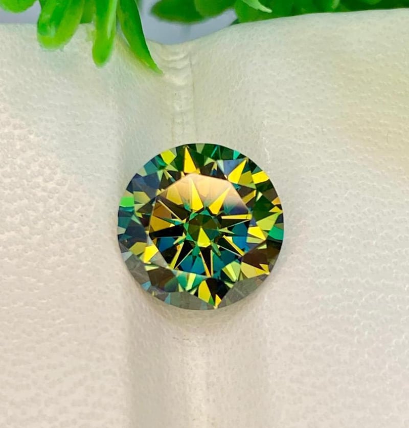 3.40 CARATS SPARKLING MOISSANITE 3.40 Carats Sparkling MoissaniteStone = MoissaniteWeight = 3.40 Carats Colour = GreenCut = RoundLustre = ExcellentNote = Gem Cil, Certified, Condition: Good - Refer Images 0488410+25