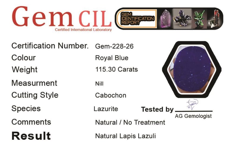 Weight = 115.30 Carats
