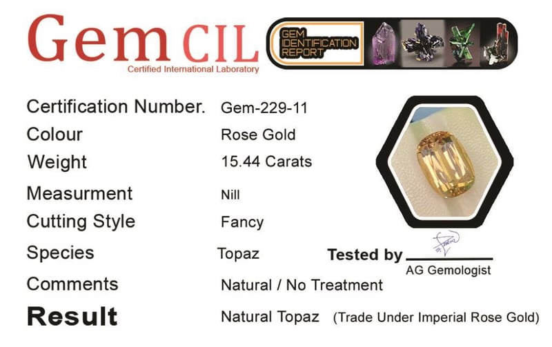 20.00 CARATS NATURAL IMPERIAL ROSE GOLD TOPAZ 20.00 Carats Natural Imperial Rose Gold Topaz Stone = Natural TopazWeight = 20.00 Carats Colour = Rose Gold Cut = Fancy Lustre = Excellent Treatment = Natural, No TreatmentQuality = Vvs (Premium)Note = Precise Custom Cut (Not Commercial)This Natural Topaz Has High Level Of Pleochroism, So Color Intensity Can Vary Upon Different Light Conditions. Condition: Good - Refer Images 0488412+11
