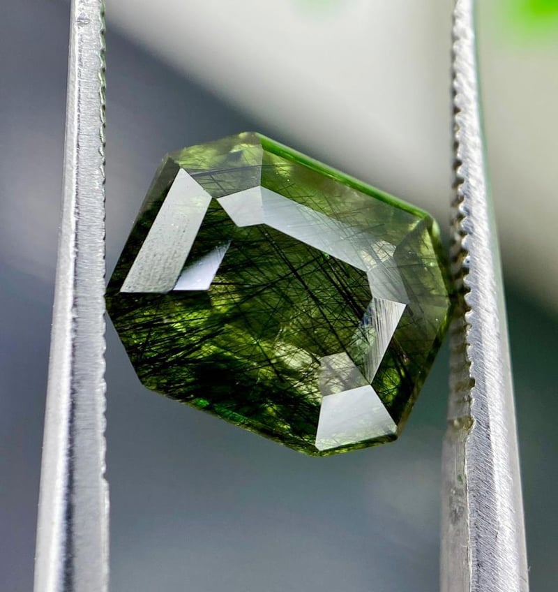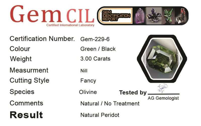 3.85 CARATS NATURAL RARE LUDWIGITE PERIDOT 3.85 Carats Natural Rare Ludwigite PeridotStone = Natural PeridotWeight = 3.85 CaratsColour = Green / BlackCut = Fancy Inclusion = LudwigiteNote = Gem Cil, Certified, Precise Custom Cut (Not Commercial) Condition: Good - Refer Images 0488412+6