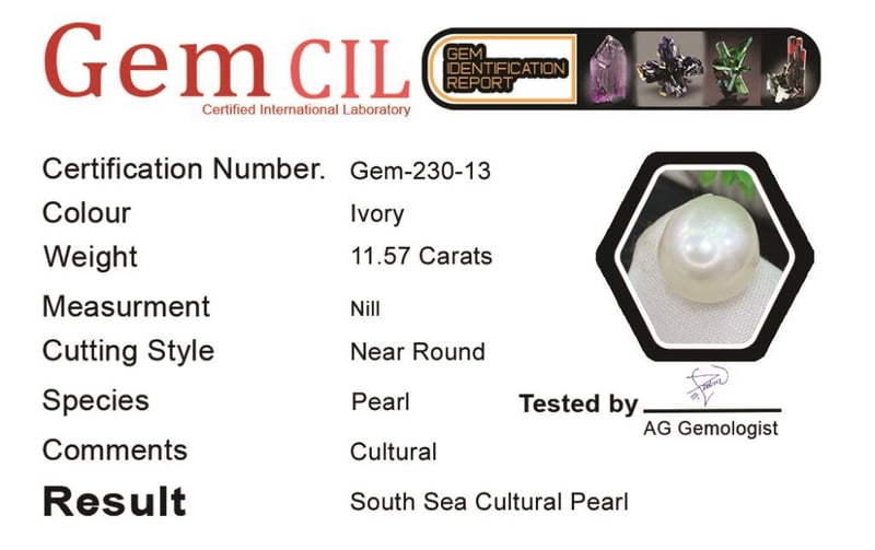 10.30 CARATS SOUTH SEA PEARL 10.30 Carats South Sea Pearl Stone = South Sea Pearl Weight = 10.30 Carats Colour = IvoryTreatment = CulturalNote = Gem Cil, Certified, Condition: Good - Refer Images 0488413+13