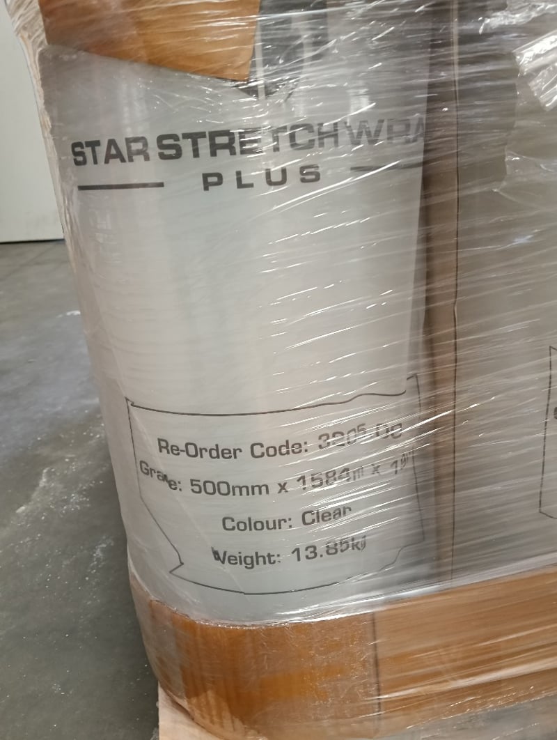 Rolls of stretch wrap, Qty of 34x rolls, Refer to photo to view specifications