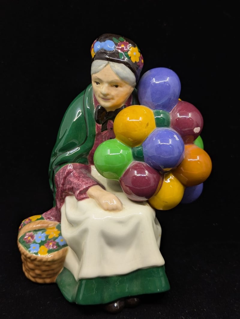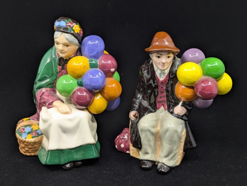 TWO PORCELAIN FIGURES Figures Feature Two Elderly People With Balloons, Figure Heights Range From Approx: 17Cm - 19Cm Condition: Good - Refer To Images 6A 587779+2