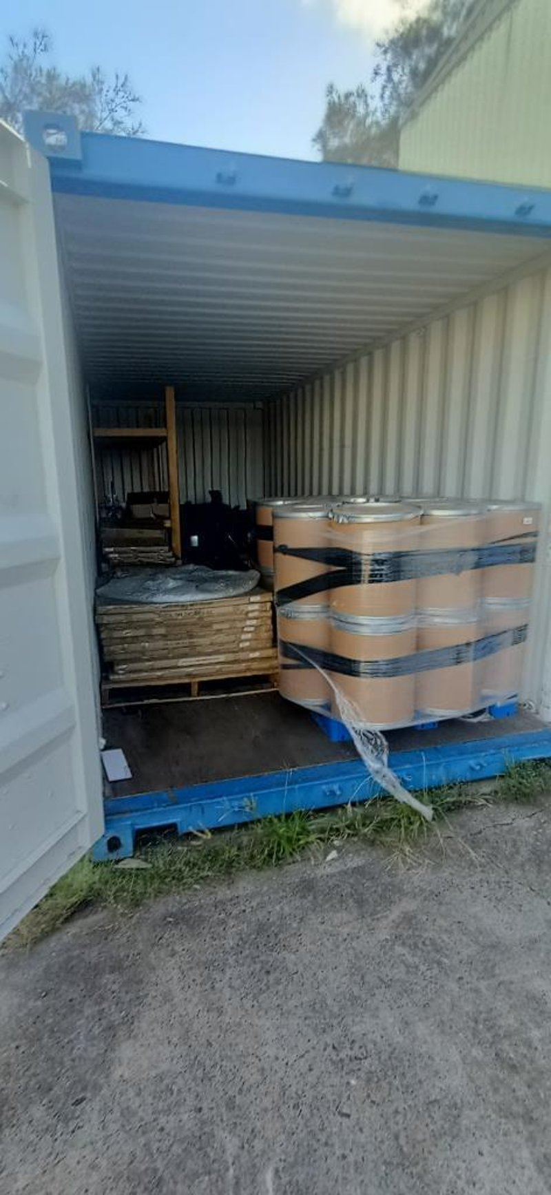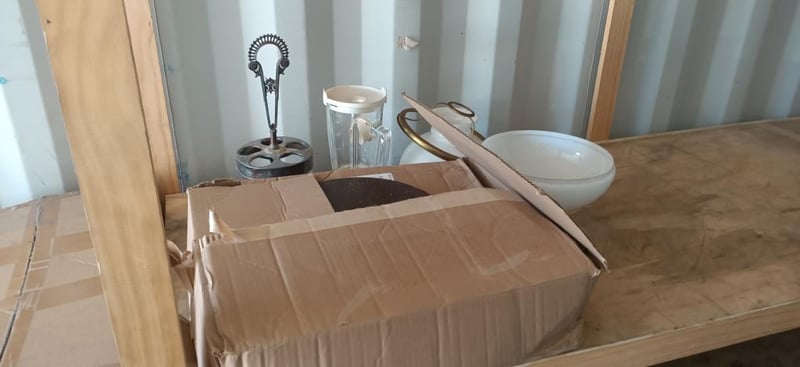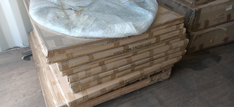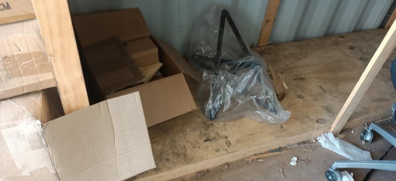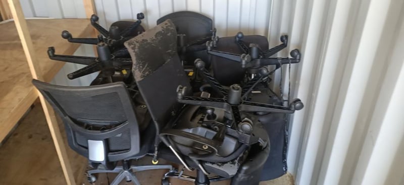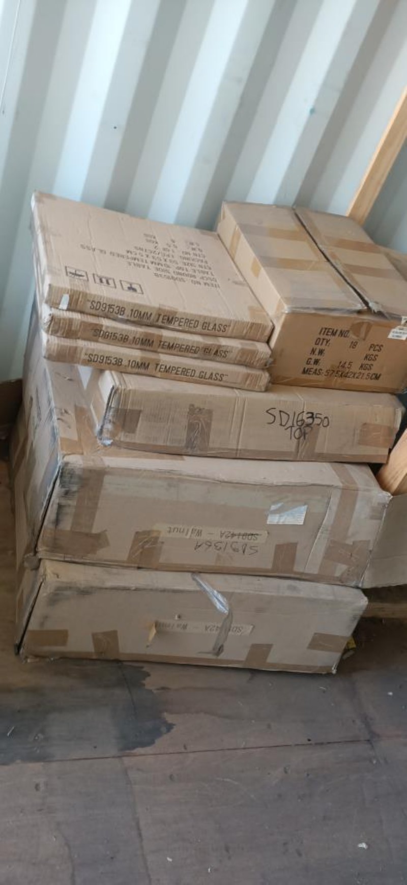 Container Contents Including Tempered Glass, Office Chair & Storage Units