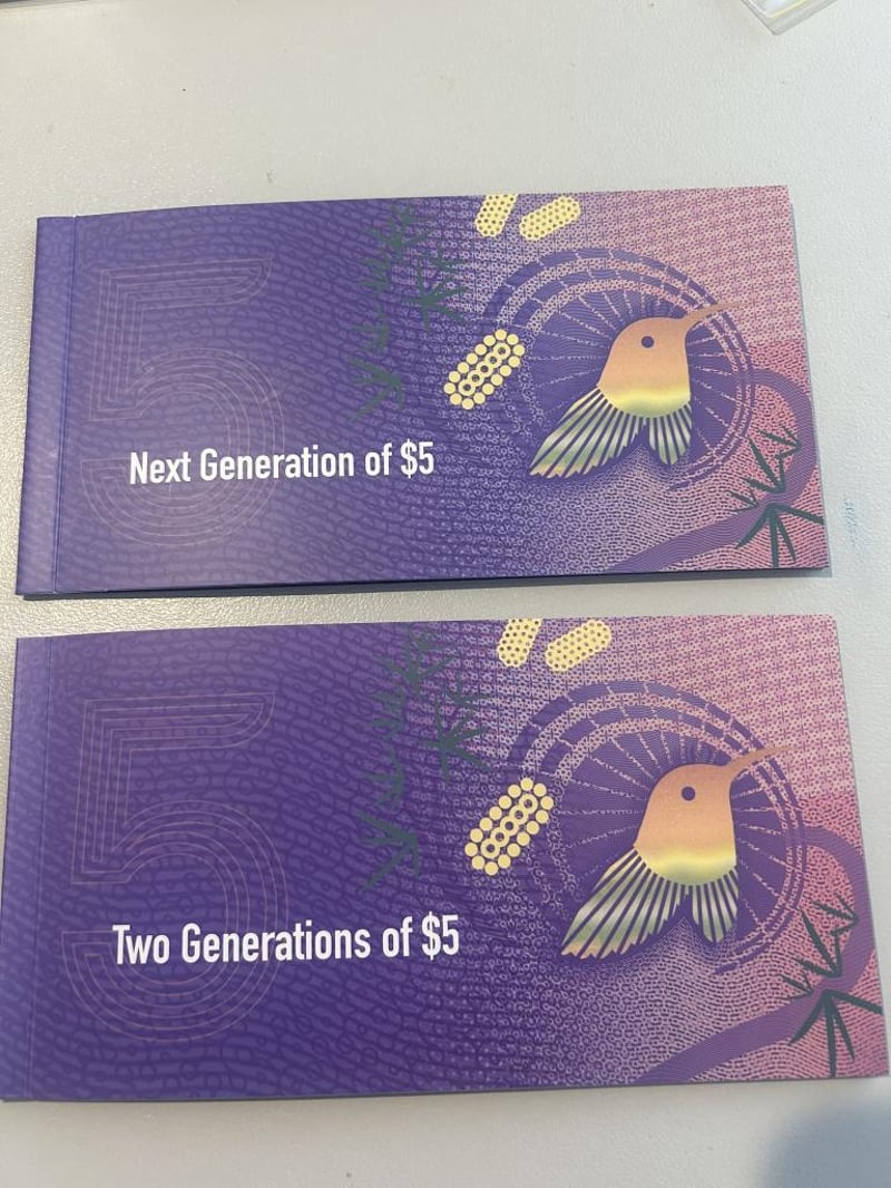 NEXT GENERATION OF FIVE DOLLARS, TWO GENERATIONS OF FIVE DOLLARS NOTES IN FOLDERS
