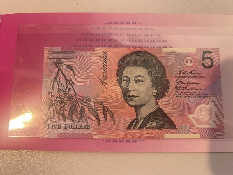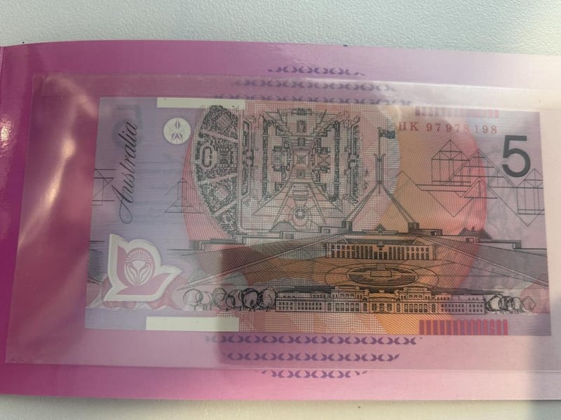 1997 FIVE DOLLAR HANDOVER OF HK, RED SERIALS NOTE IN FOLDER Mintage Of 8000 With Red Serial Numbers Condition: Unc233488+88