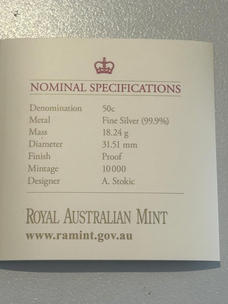 2013 FIFTY CENT CORRONATION FINE SILVER PROOF COIN 18.24Grams 99.9% Silver 233488+104