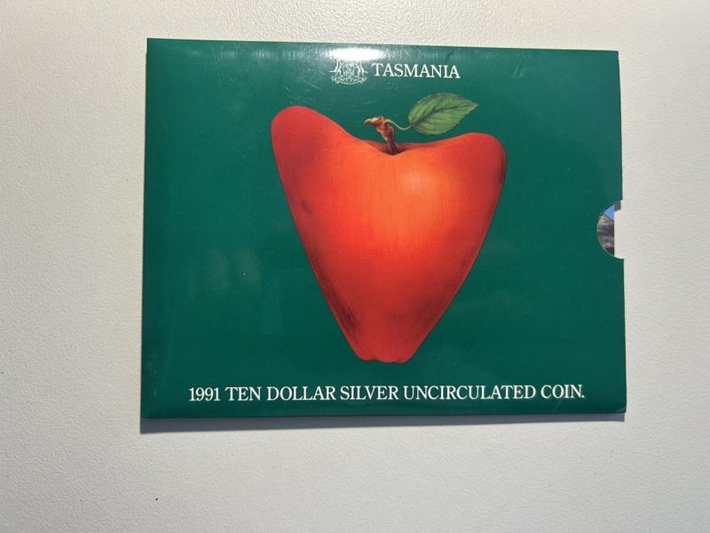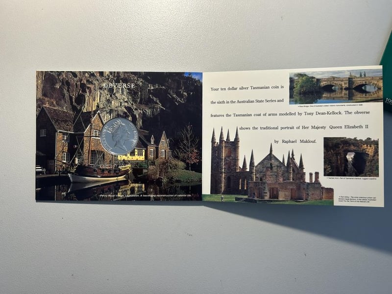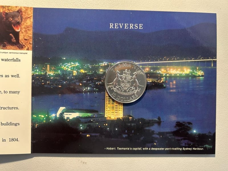 1991 TEN DOLLAR TASMANIA SILVER COIN IN FOLDER 20 Grams 92.5% Fine Silver Condition: Unc233488+11