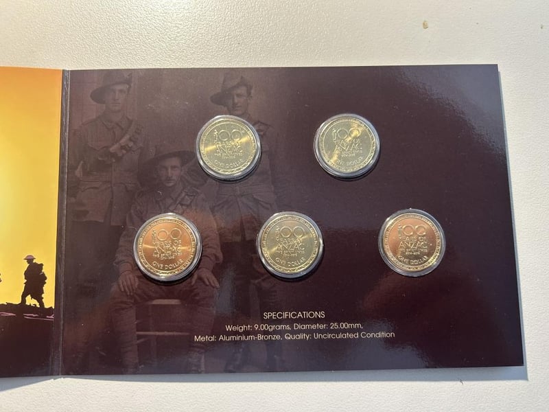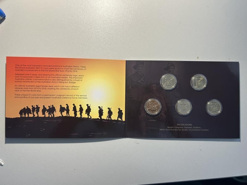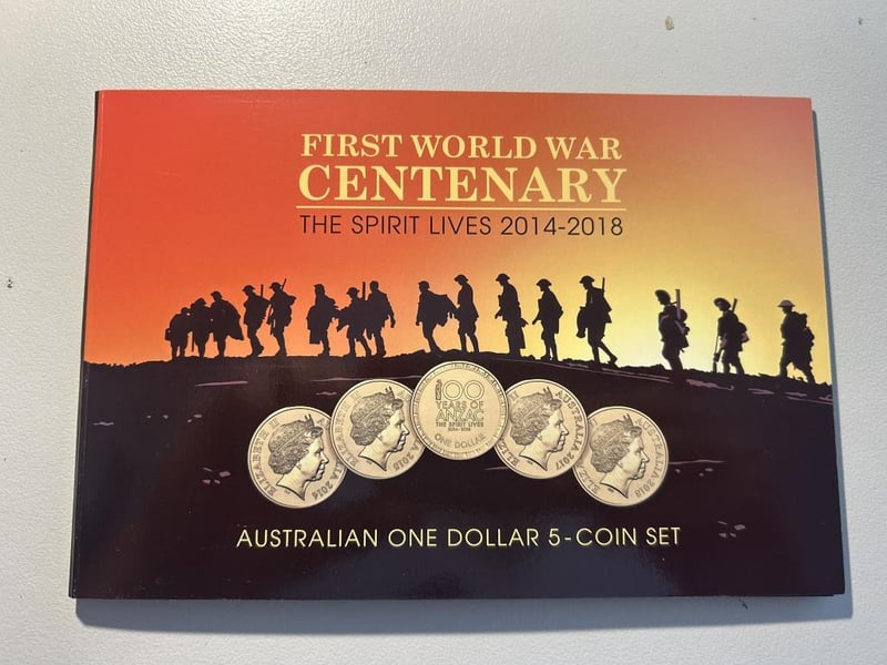 ONE DOLLAR FIRST WORLD WAR CENTENARY FIVE COIN SET Condition: Unc233488+12