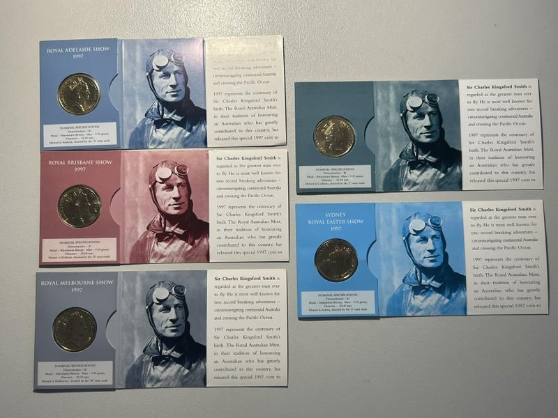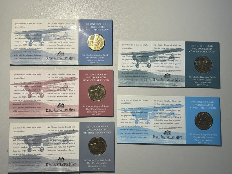 1997 ONE DOLLAR KINGSFORD SMITH SET(A)(B)(C)(M)(S) FIVE COINS The Five Coins Make Up A Full Set Condition: Unc233488+18