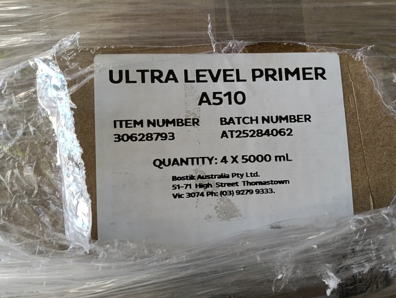 Pallet of Ultra Level Primer A510, 4x 5000mL per carton. Qty cartons to pallet Sold as lot