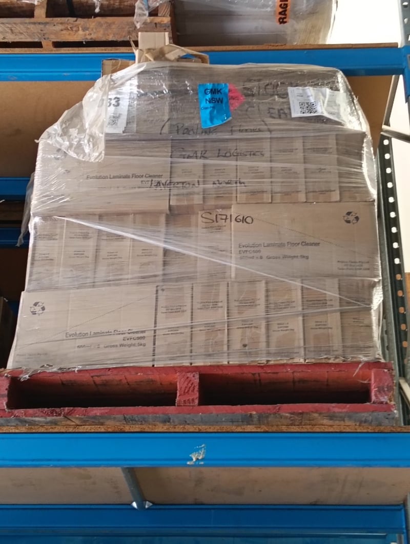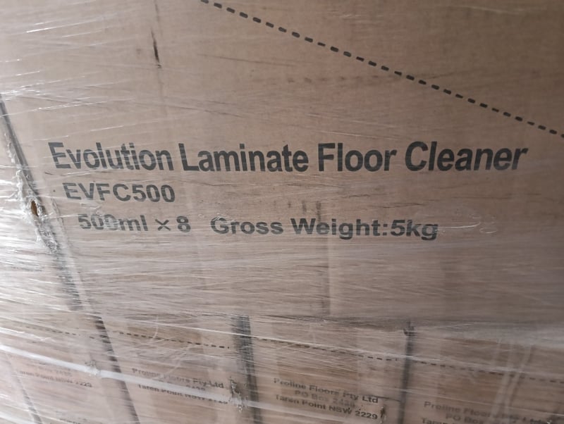 Pallet of Evolution EVFC500 laminate floor cleaner, 8x 500mL per carton. Qty cartons to pallet