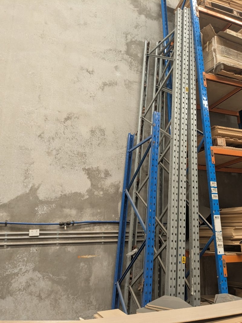 Pallet Racking Components - Comprising 3x APC Storack 290 uprights, 1x 3000mm upright and 12x assorted 2800mm load beams Note: Signs of wear and tear, disassemble rack Sold as a lot.