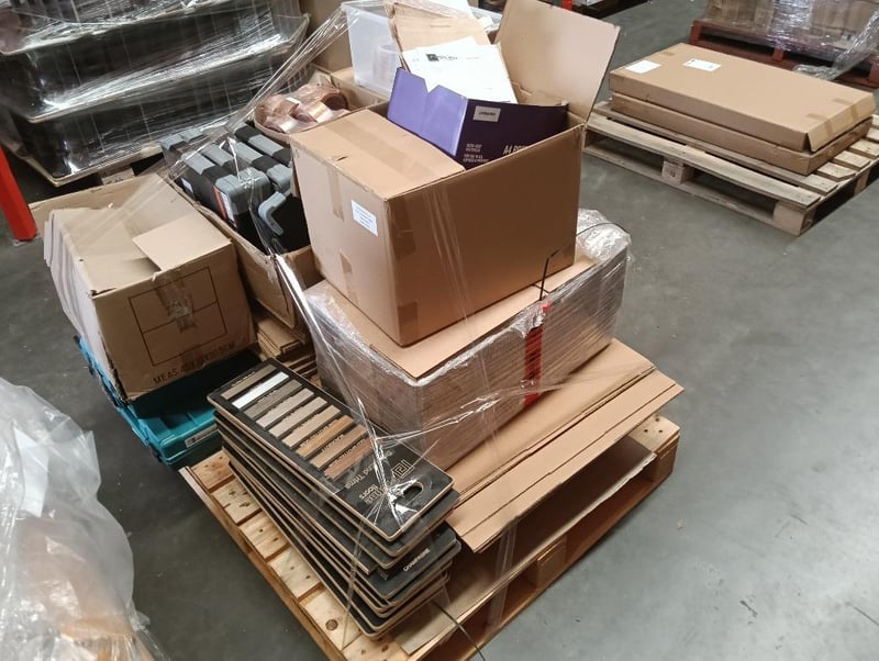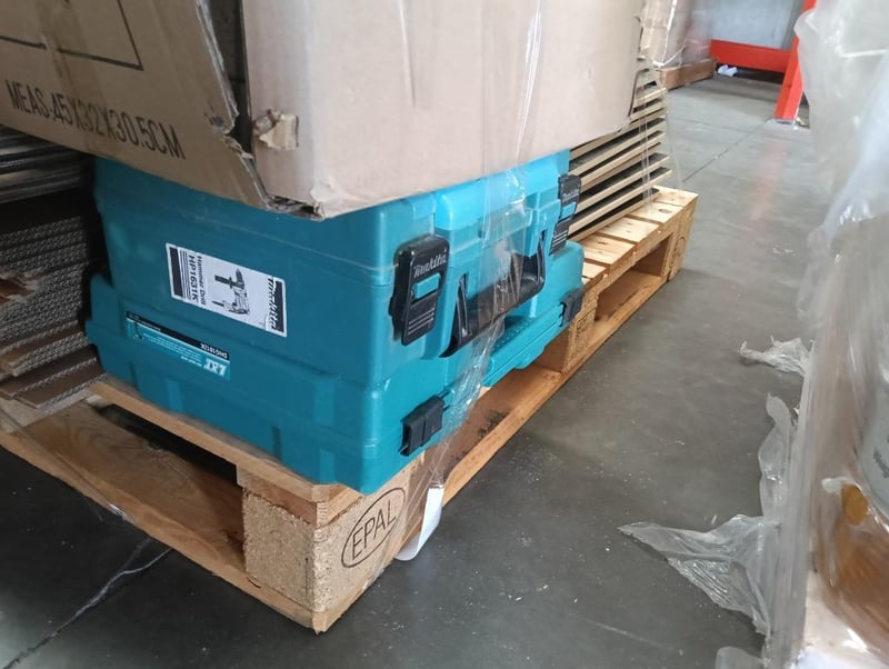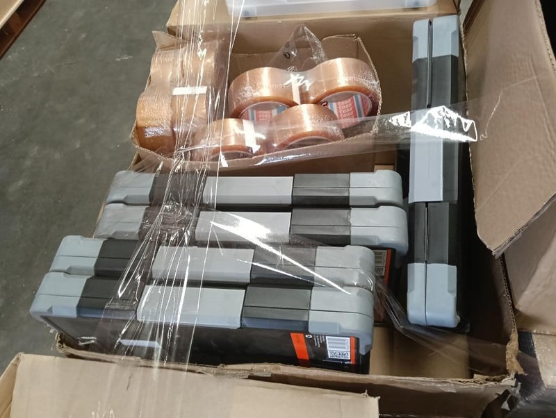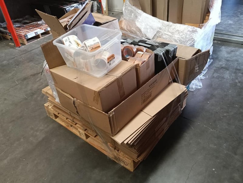 Pallet of assorted essentials - Power tools, adhesive tape, cardboard boxes & more Sold as lot