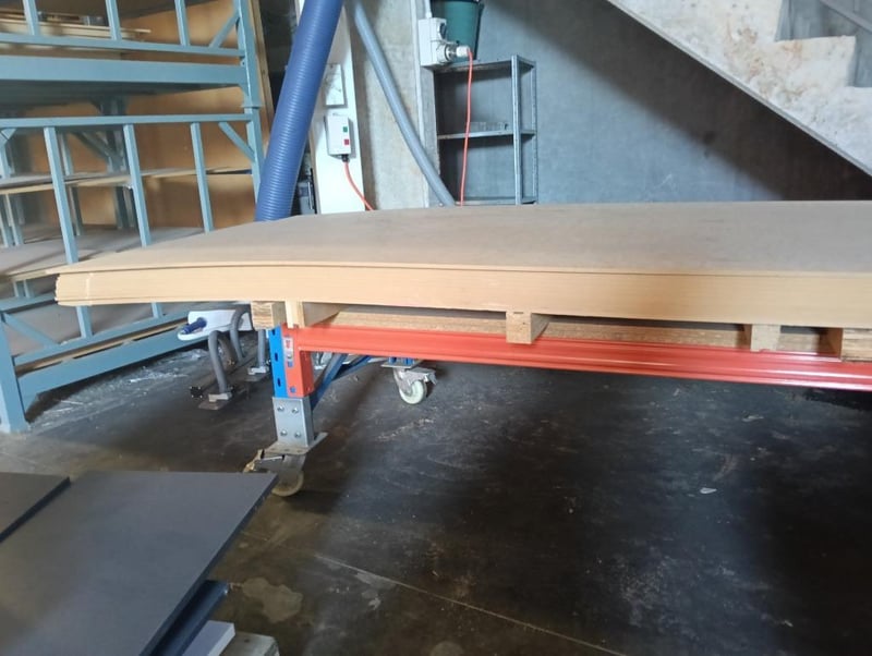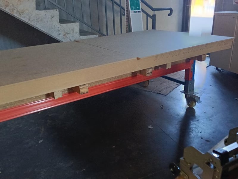 Timber boards with steel roller trolley