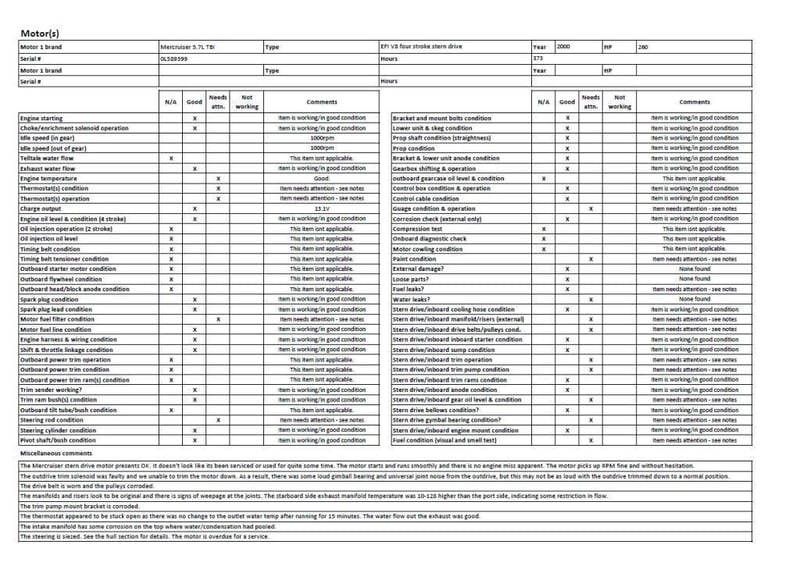 Water Pump, Bilge Pump, Fuel Filter, Battery, Handbrake, Brake System. Please see attached documents below for full report.