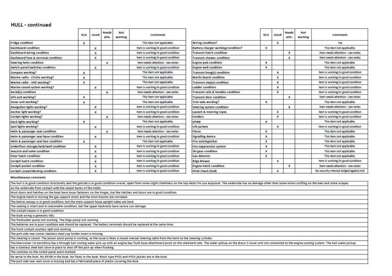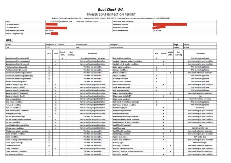 UPDATE AS AT 19/01/2026 : Inspection Report completed on boat shows following requires attention.