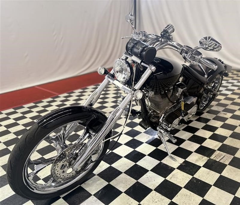 Customer Advises: Ultima Godfather Chopper independently constructed vehicle, kraftech frame, 110 cubic inch RevTech V Twin, Ultima 6rpd RHD trans 3'primary belt drive, BDL Clutch 300mm Rear Tyer.