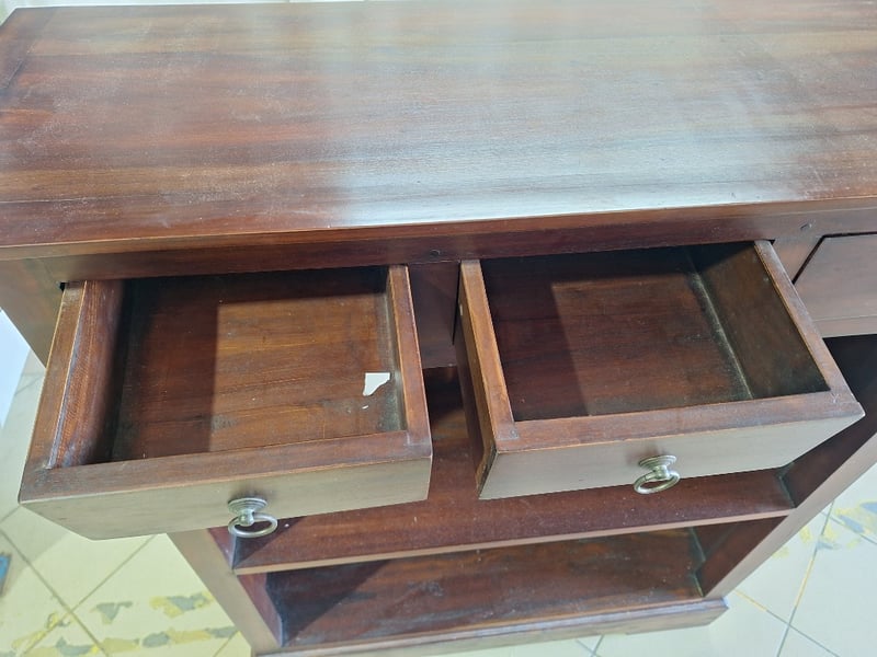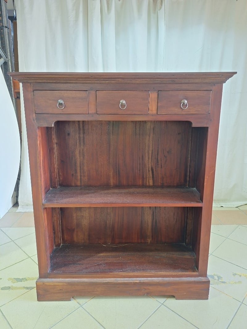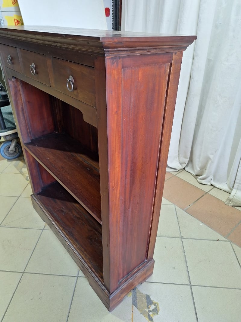 Bookcase With Drawers, Timber Style, Brown Finish