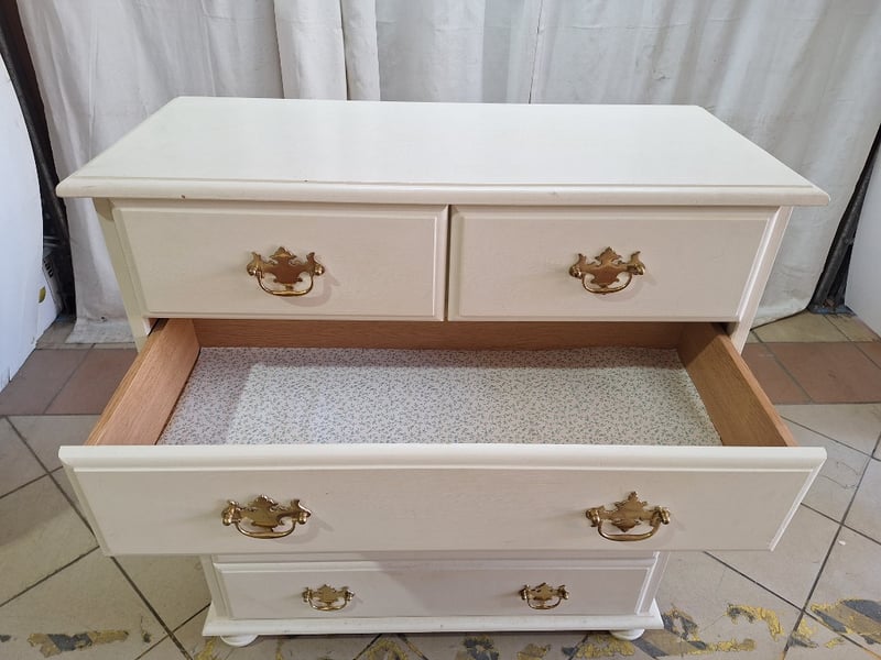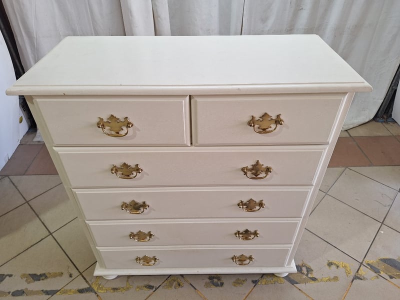 Chest Of Drawers, Timber Style, White & Gold Finish