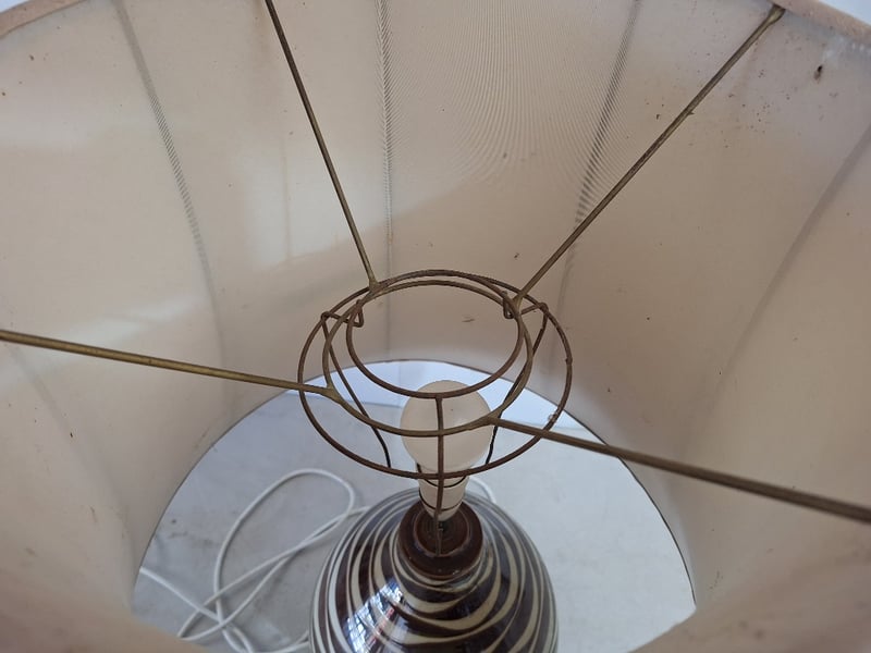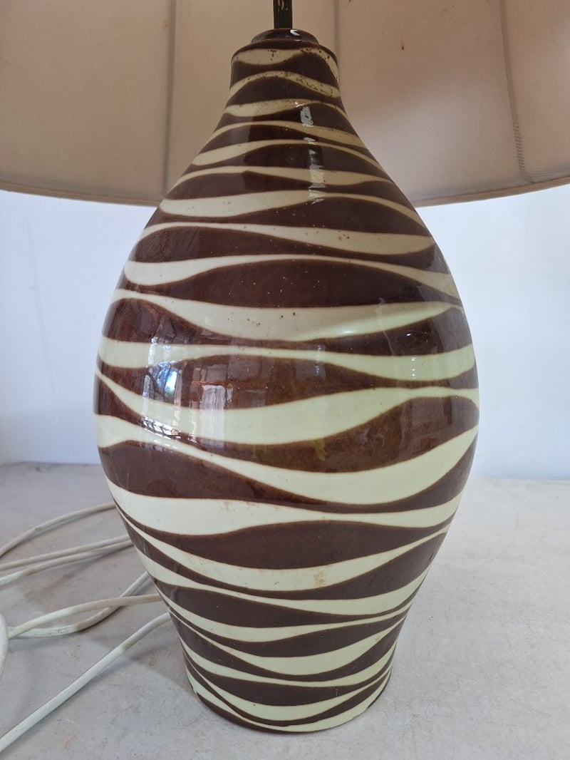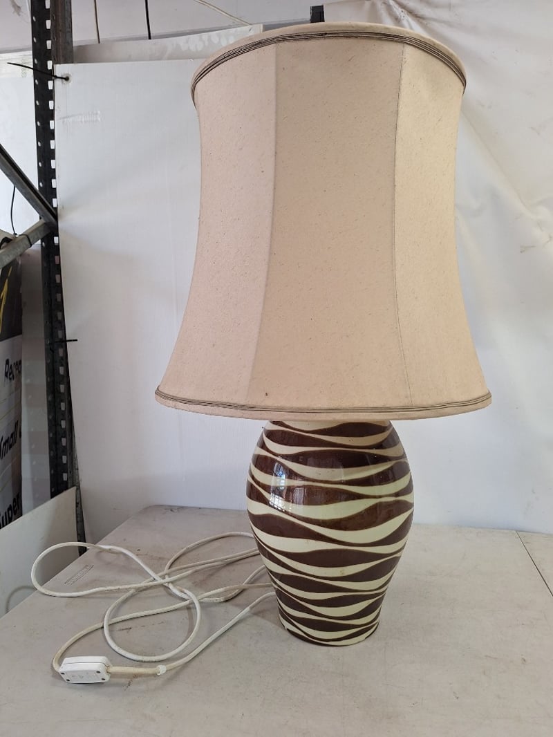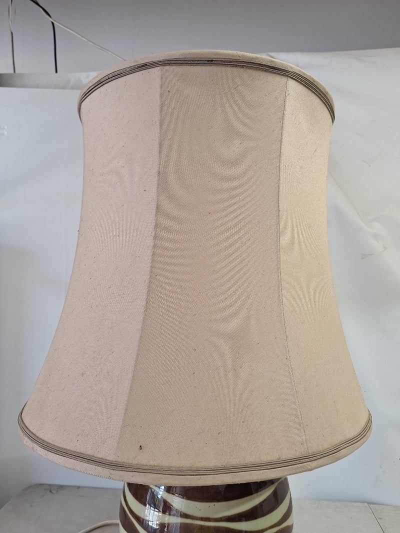 Large Table Lamp, Ceramic Style, Brown & White Finish Dimensions H:83cm W:50cm D:50cm